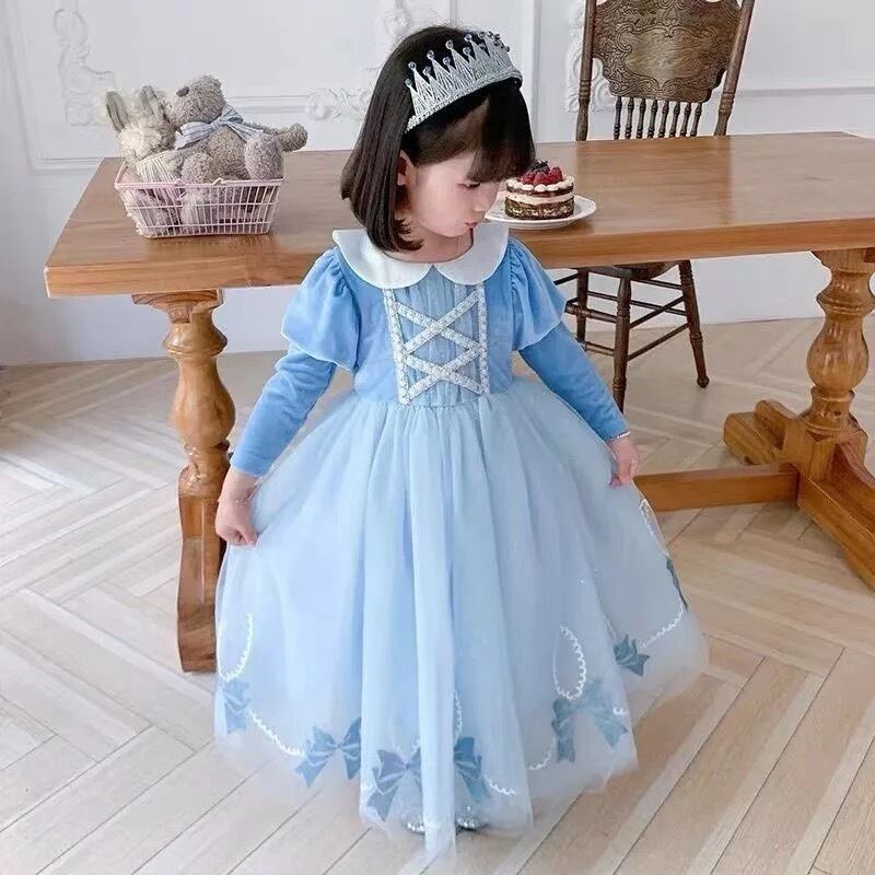 鮮やかなブルーが可愛い♡冬素材のドレス(^^)