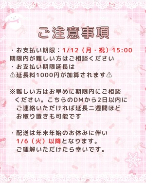 【12/21.22.23のインスタライブのご精算がある方は、同梱いたしますのでお支払いをお待ちください♡お先にこちらの抽選結果内容をご確認くださいませ♪】