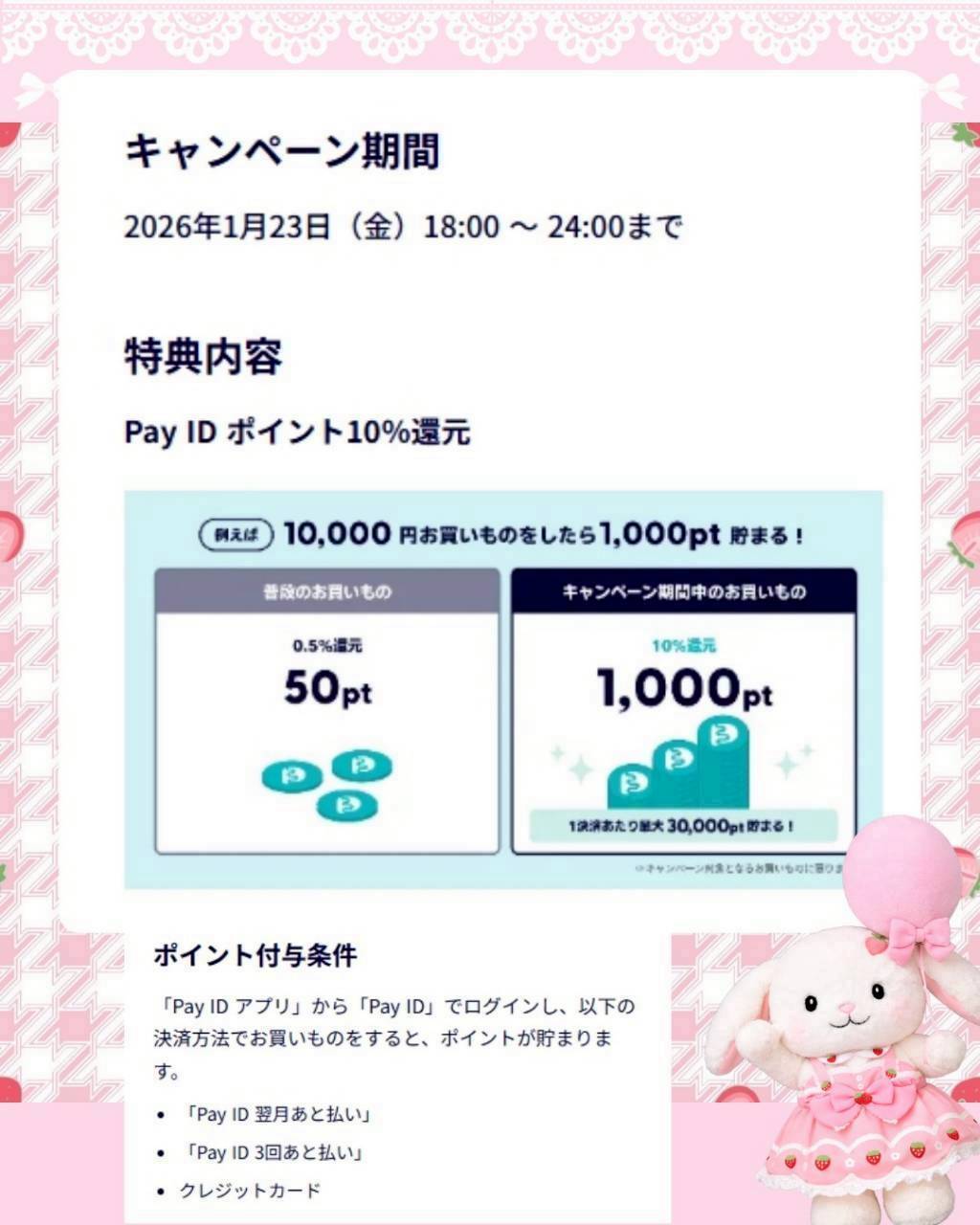 アプリ限定♡10%大還元(1/23♡6時間限定)PayID