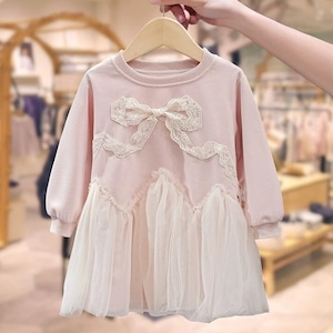 【Pico即納】size90,100× Pink/Gray リボンチュールチュニック