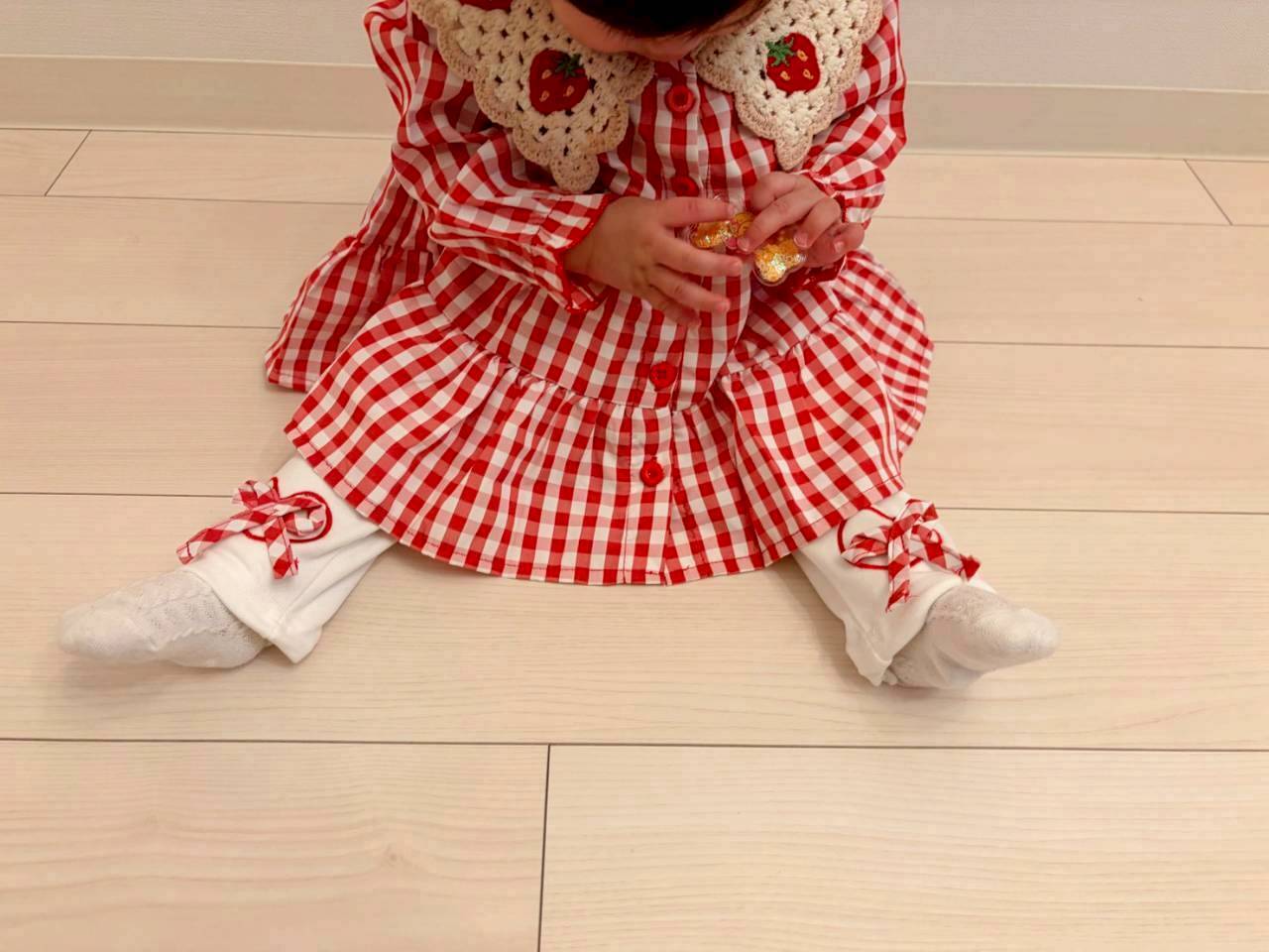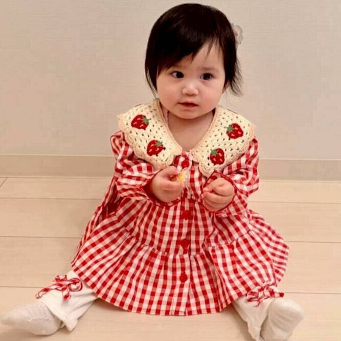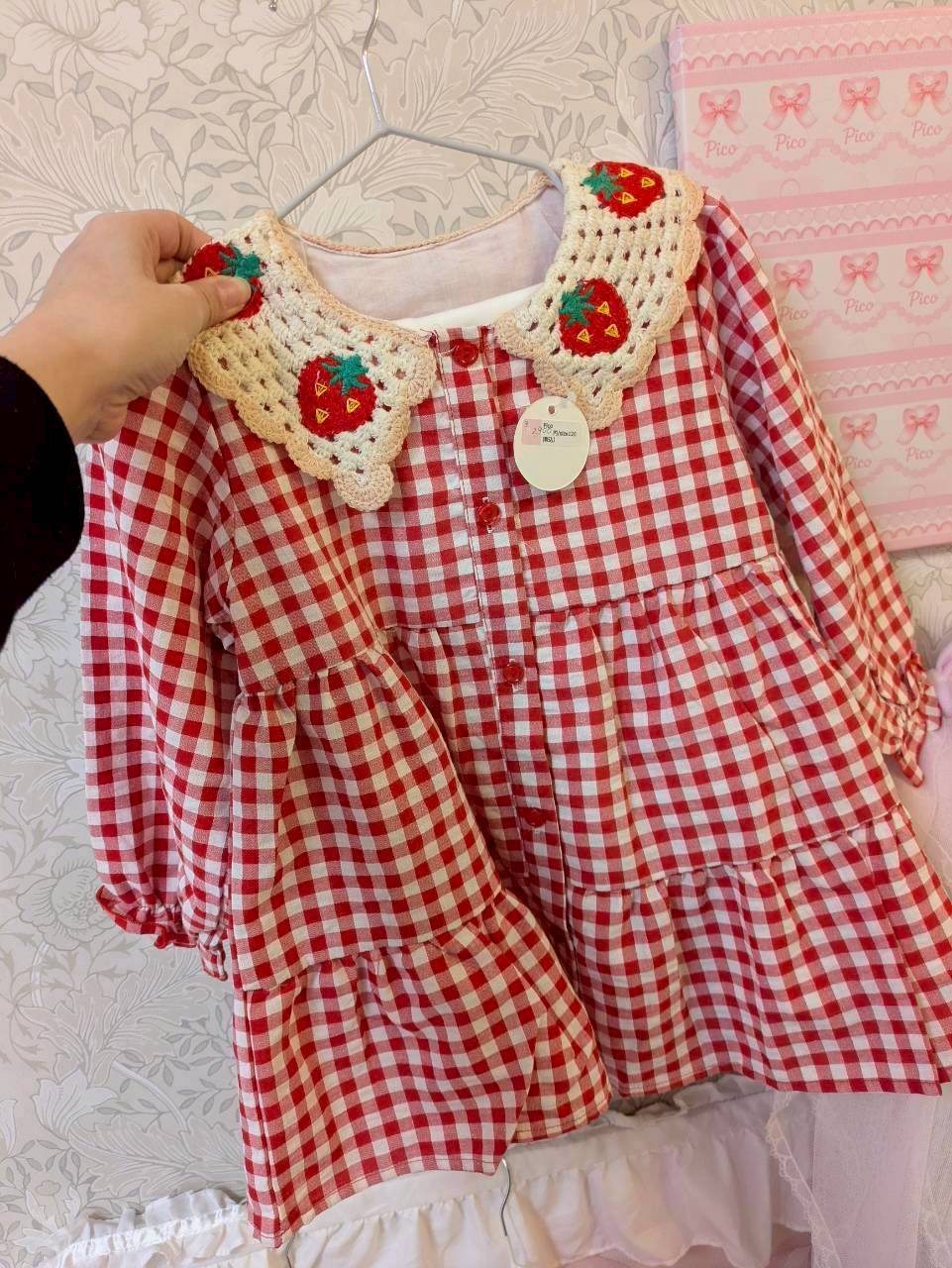 赤のギンガムチェックに、いちごモチーフの襟がとびきり可愛いワンピース♡
