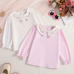 【Pico即納】size120 pink/white いちご刺繍丸襟ブラウス