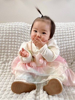 立体チューリップモチーフが目を惹く、とびきり華やかなベビーワンピース♡