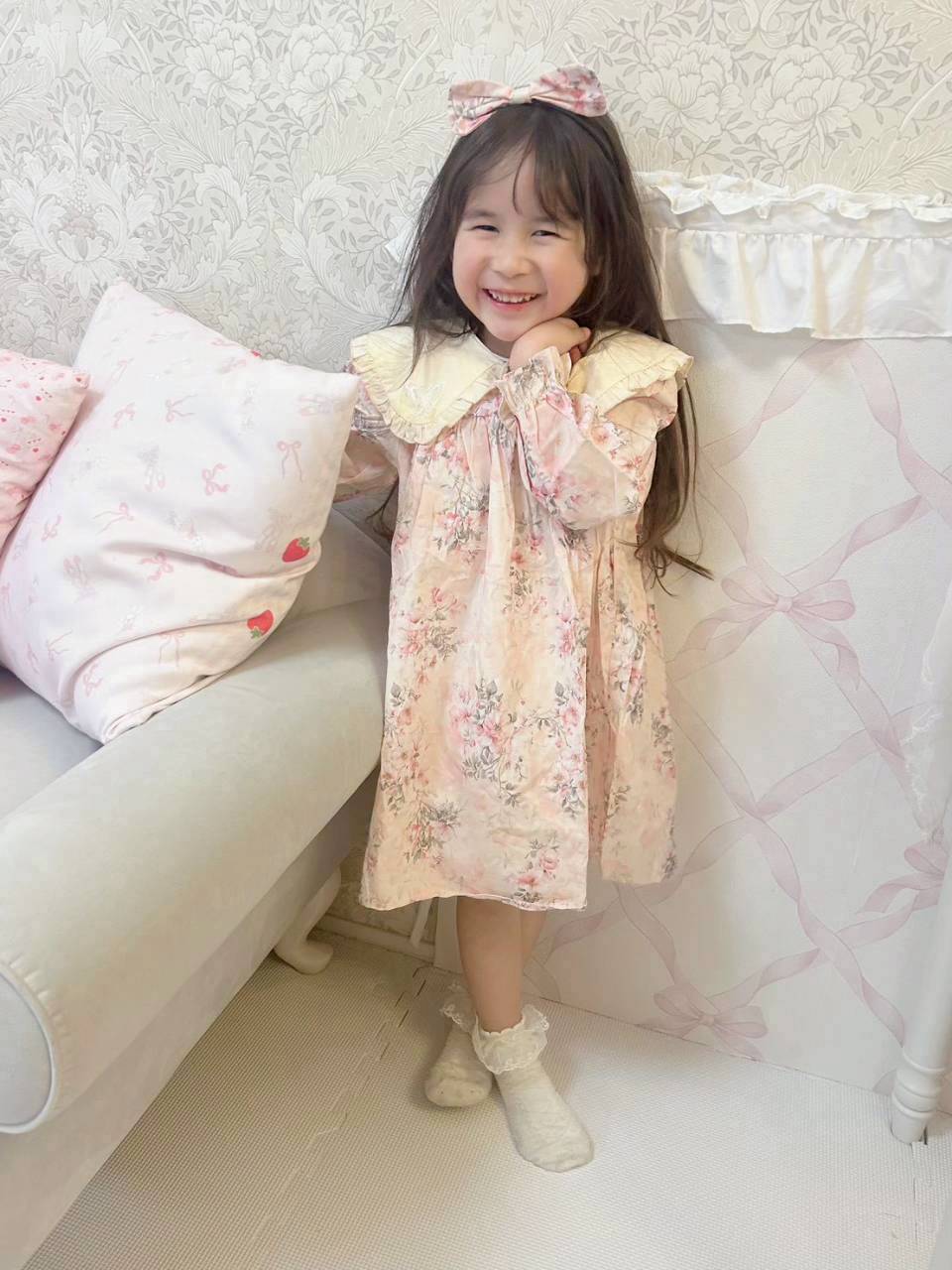 【Pico即納】size110.120 アンティークフラワーワンピース(カチューシャおまけ)