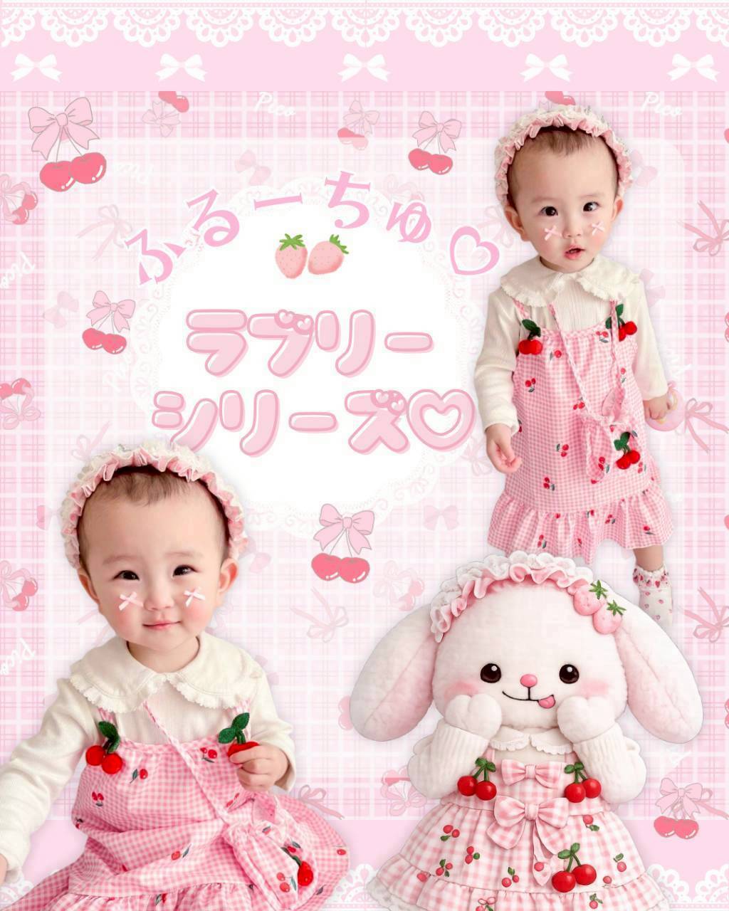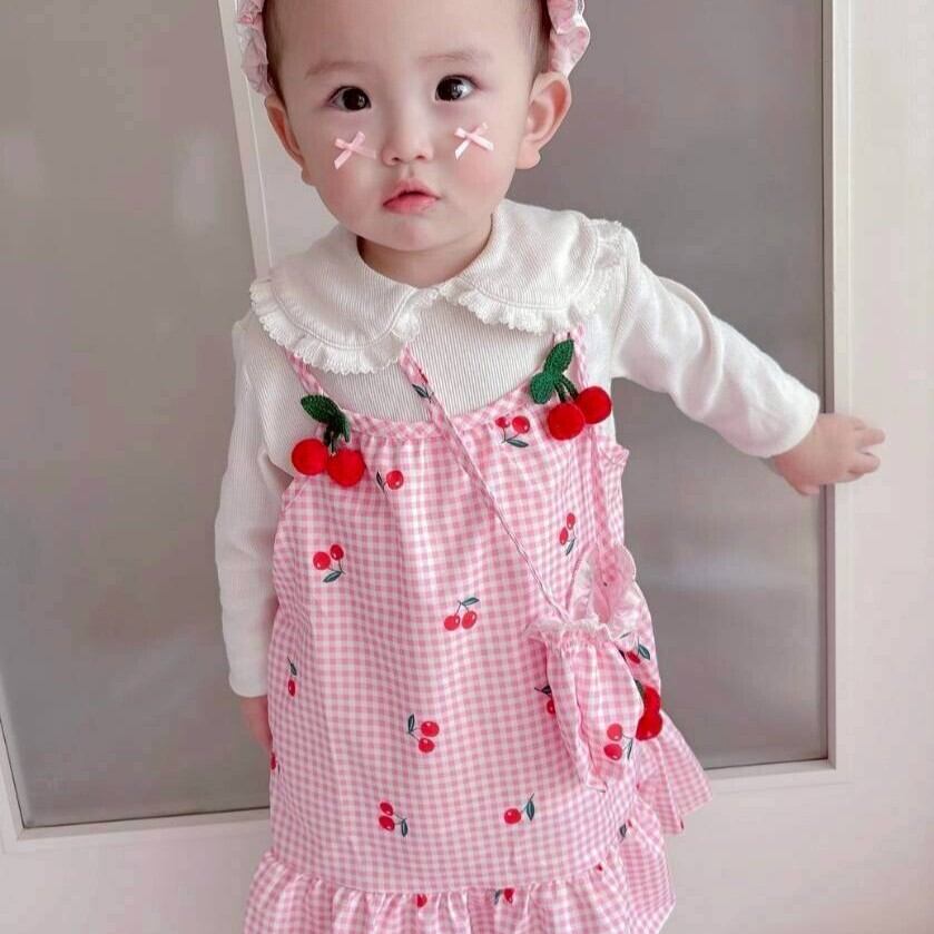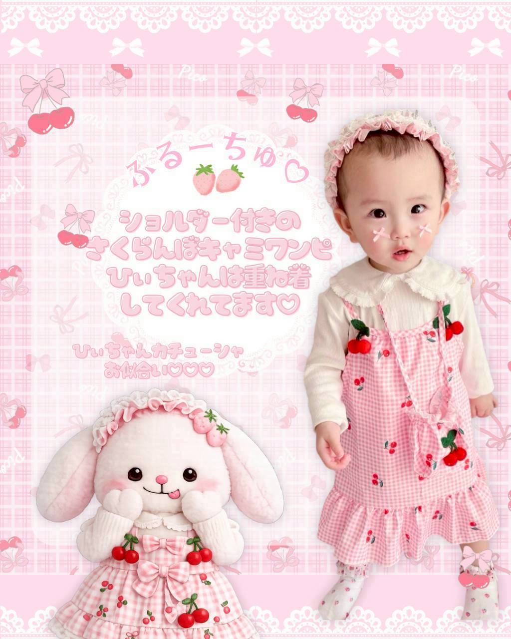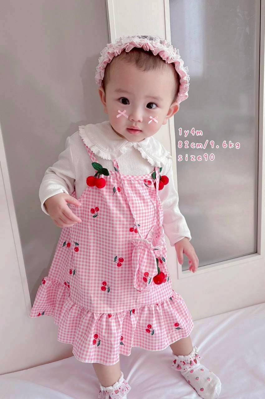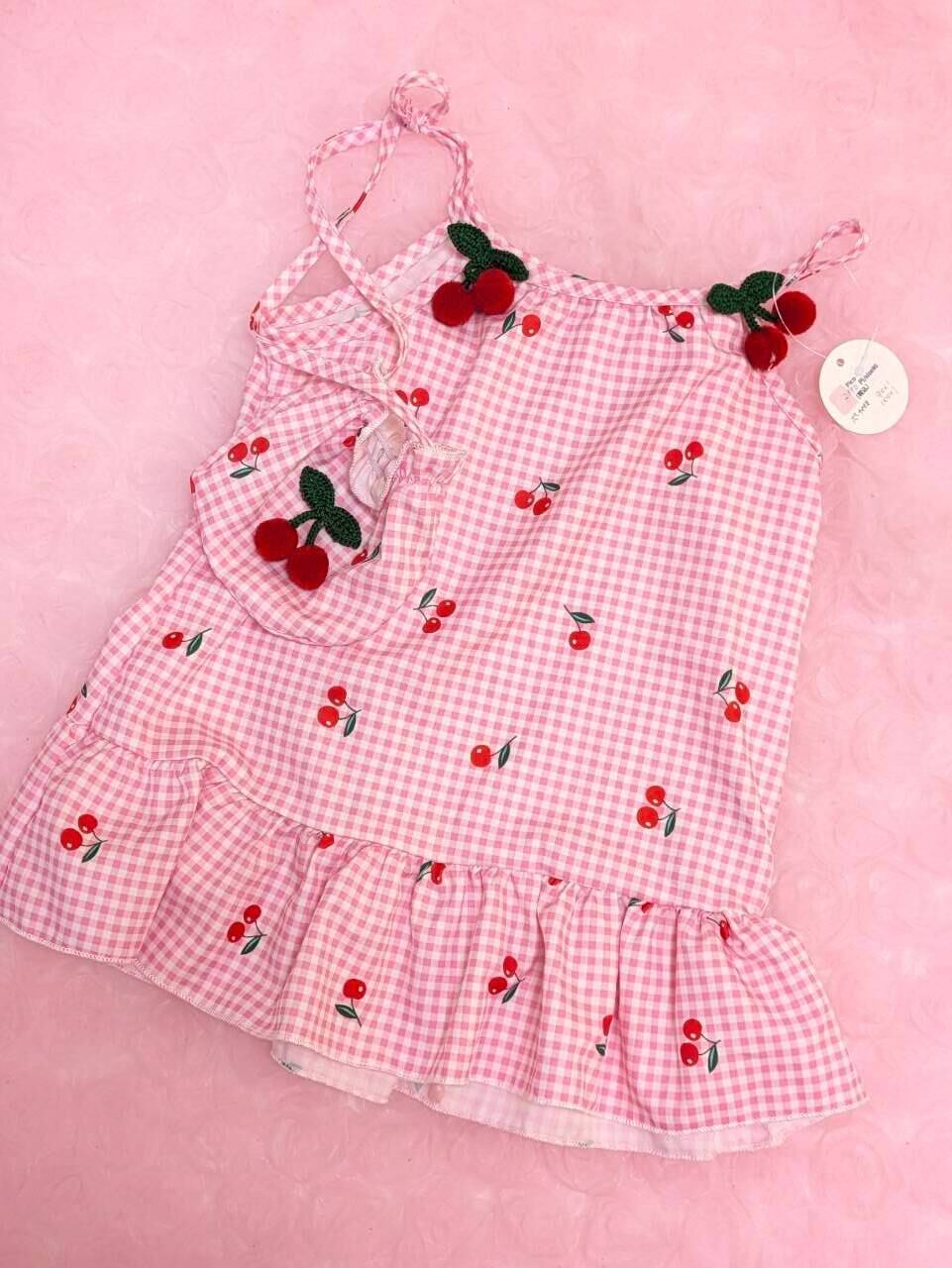 やさしいピンクのチェック柄に赤いさくらんぼが映える、ガーリー気分たっぷりの一着です。