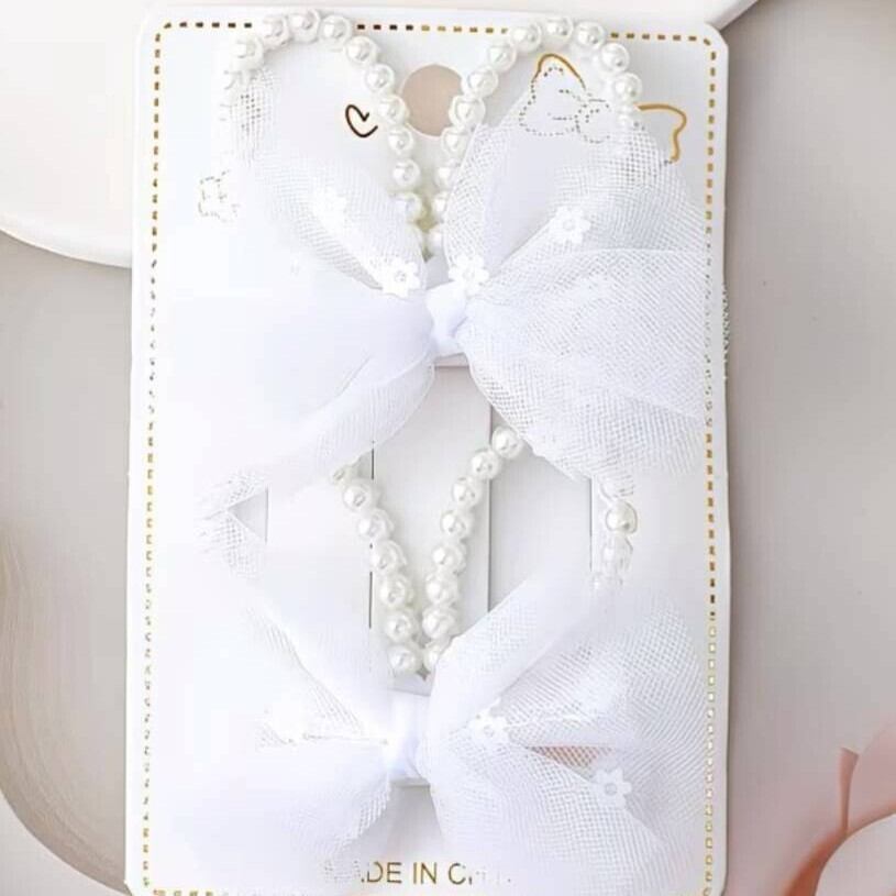 ボリューム感たっぷりのチュールリボンに、パールのうさ耳アクセントをプラス。