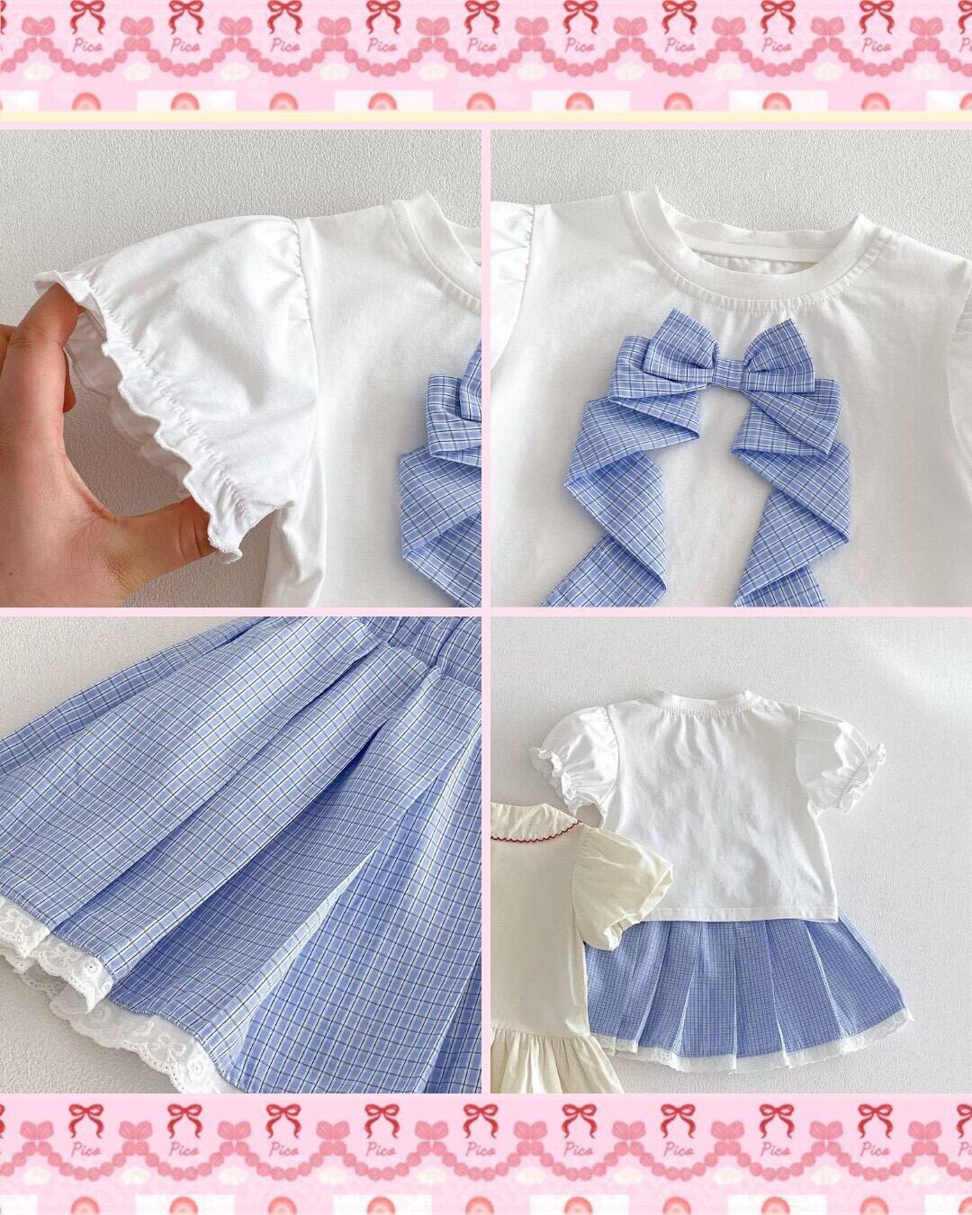 爽やかなストライプ柄が魅力のトップス&スカートセット。