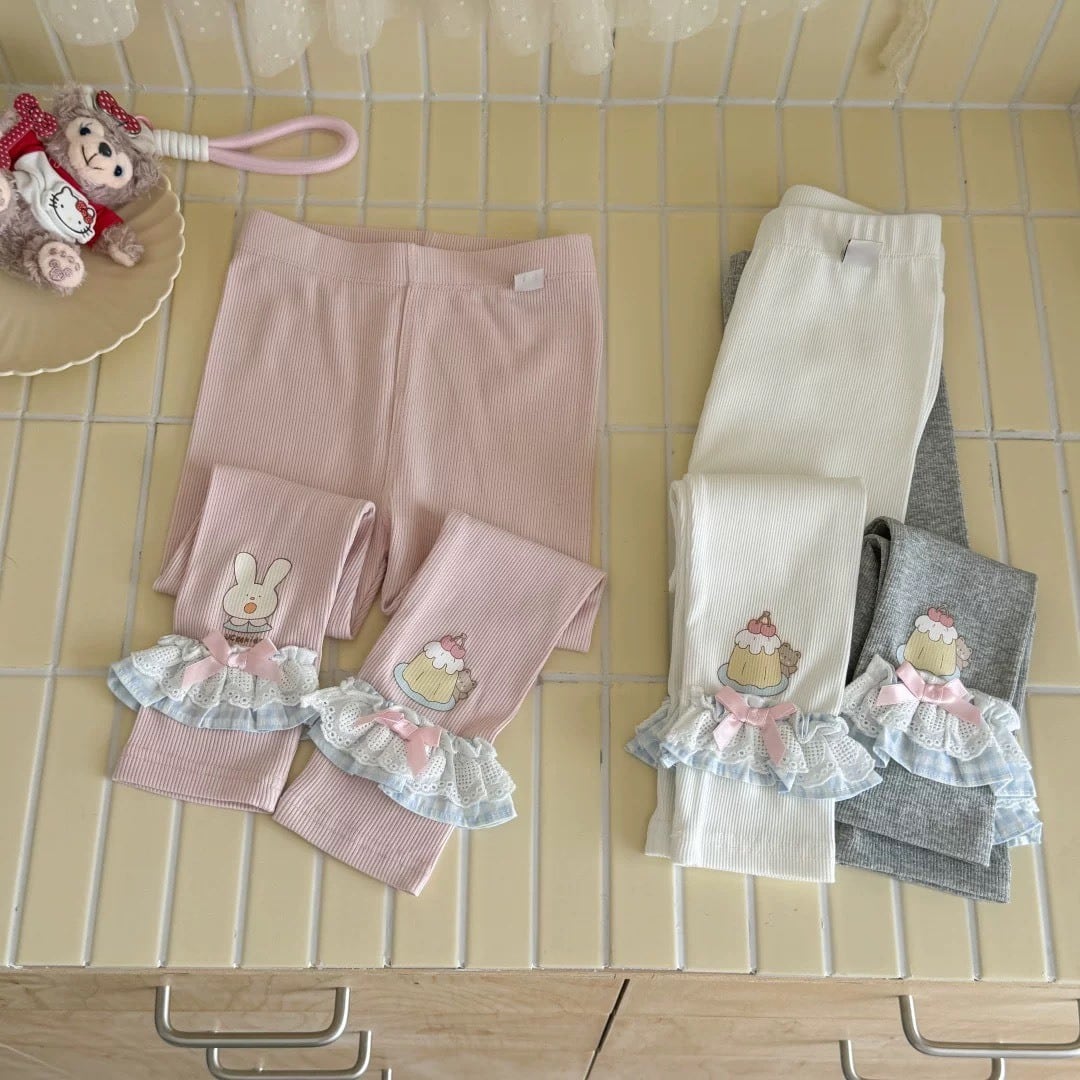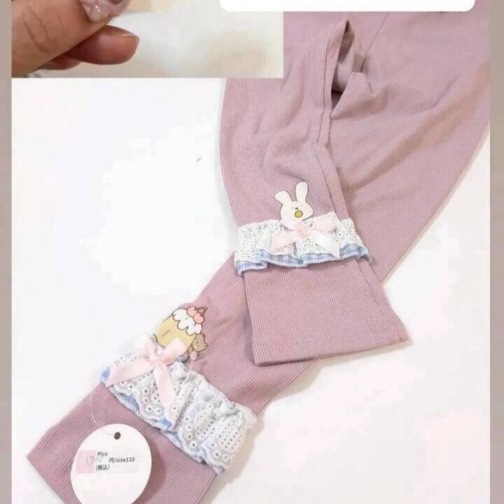 【レギンス♡】size120 パープル うさちゃんとプリンレースレギンスりぼんレギンス