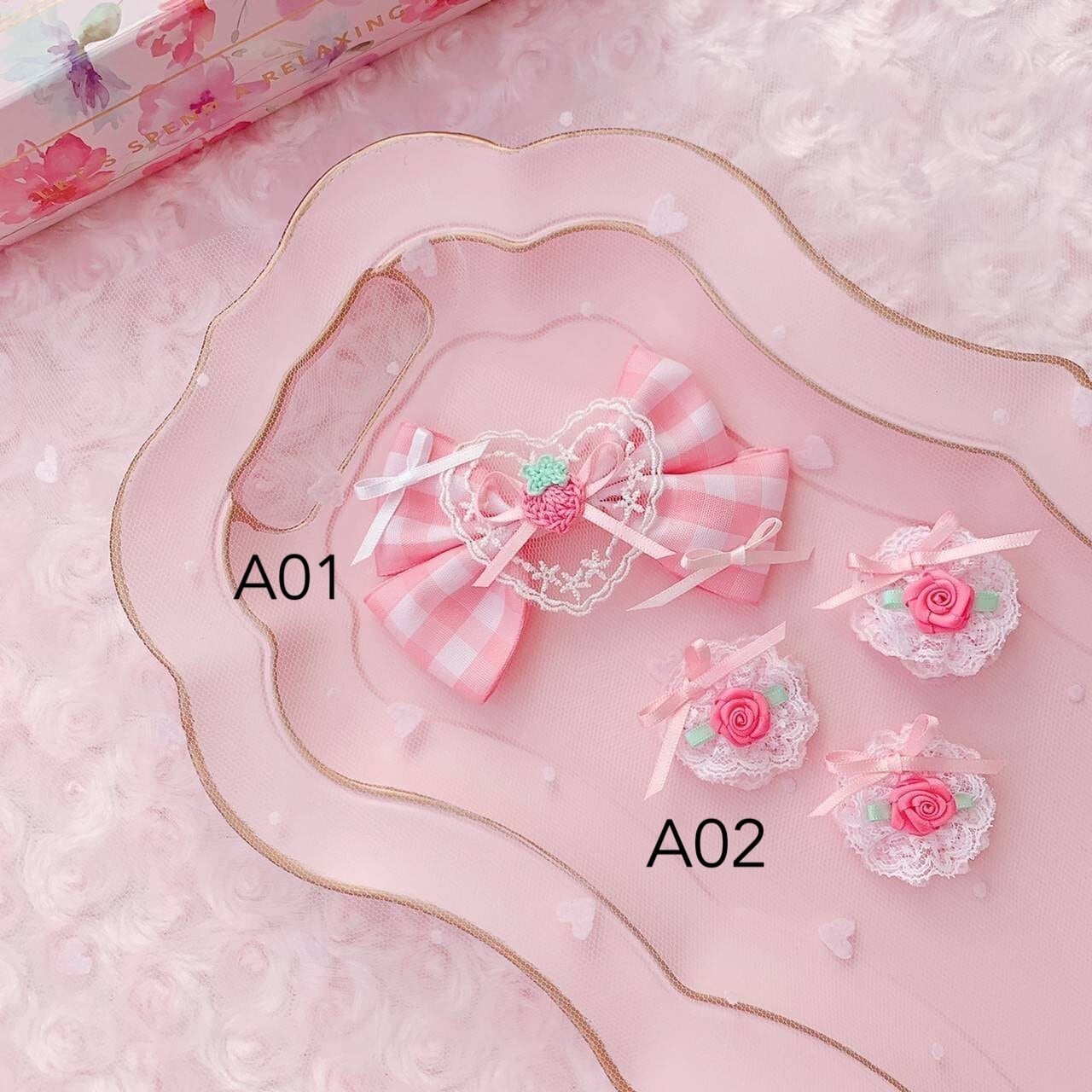 ・ハンドメイド B02 パフェリボンクリップ(ピンク) 600円