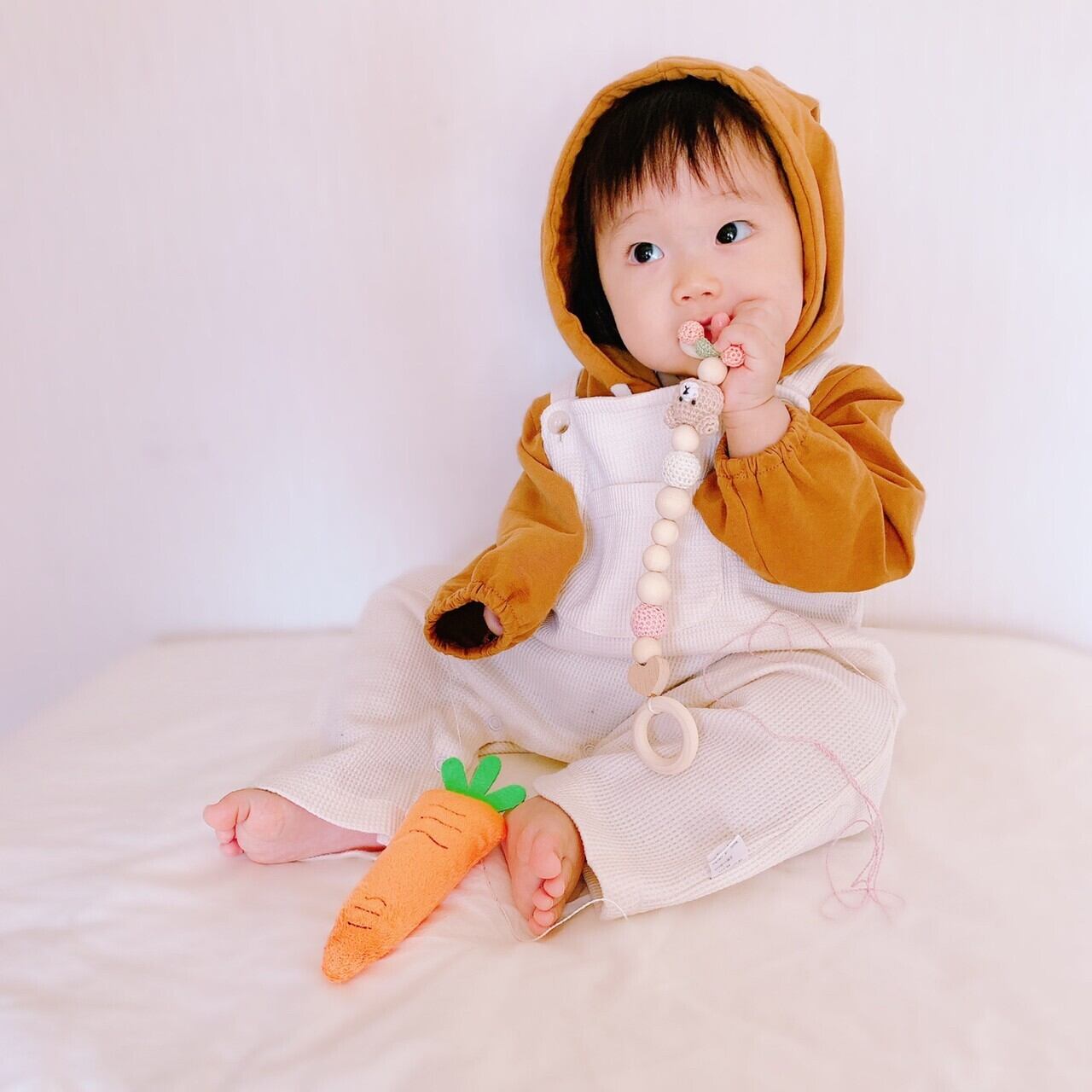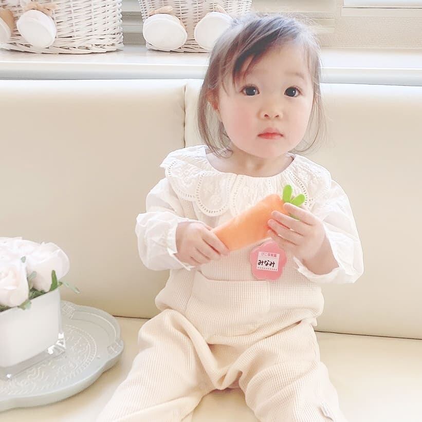 人参さんもついてます♪とーってもかわいい柔らかいサロペットです