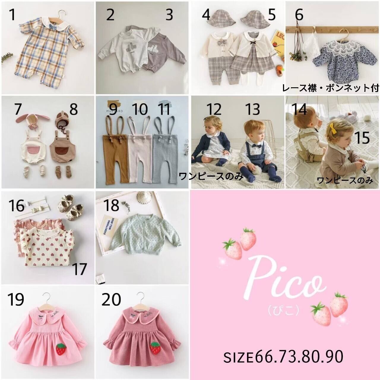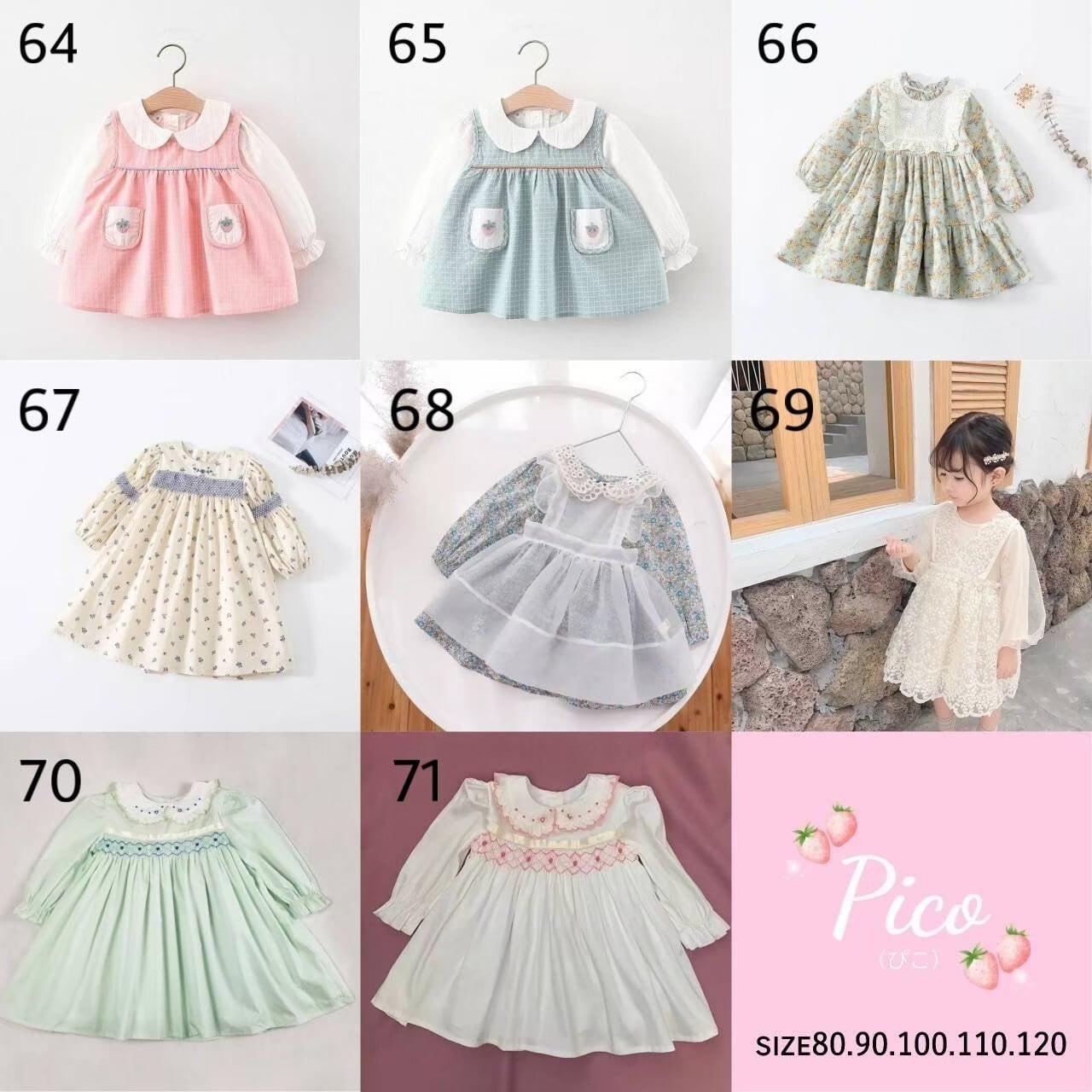・No.20 サイズ 90 丸襟刺繍のいちごワンピース(ダークピンク) 2,400円