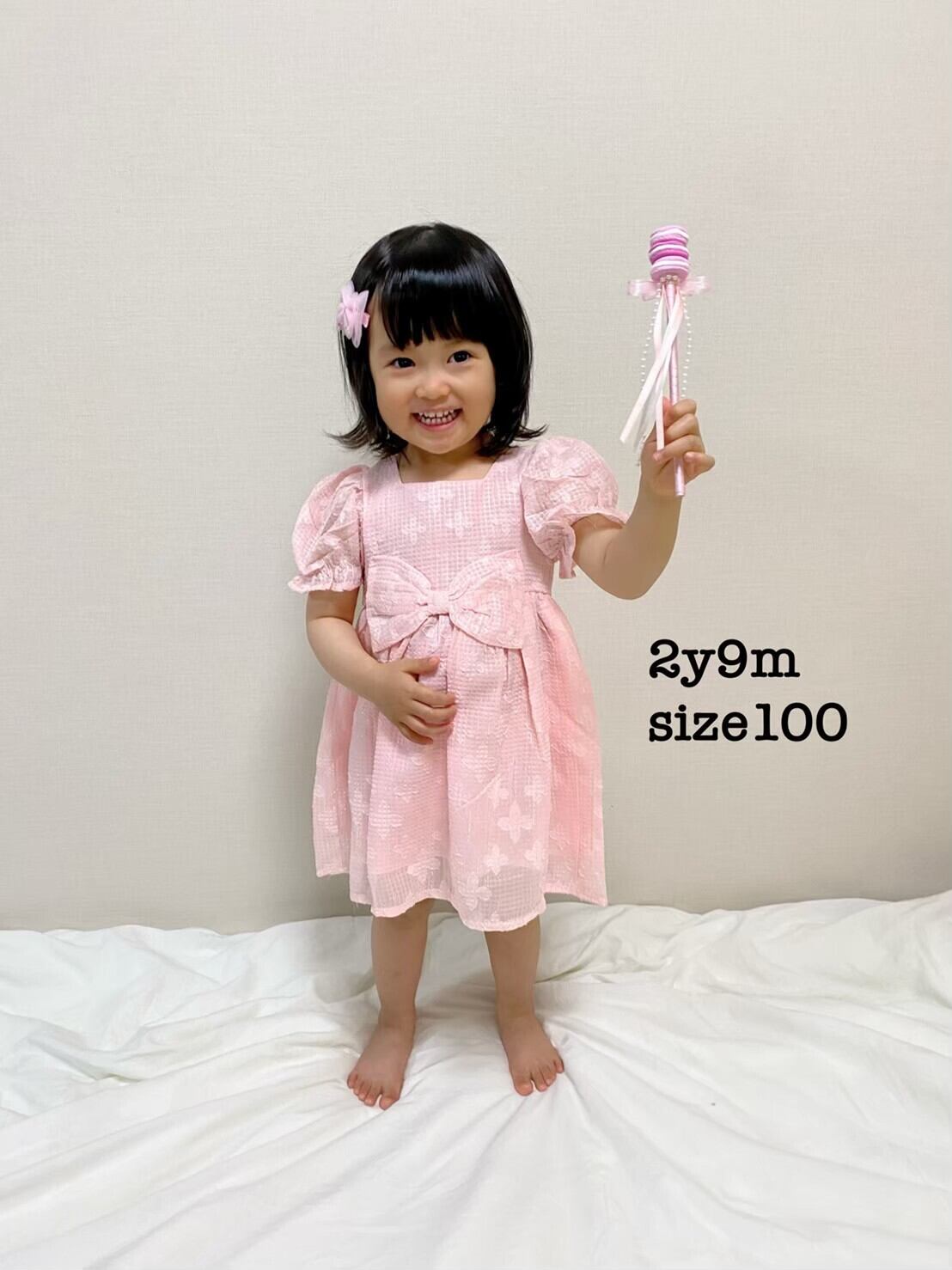 【即納販売♫数量限定】size90 ※膝丈※フロントリボンワンピース