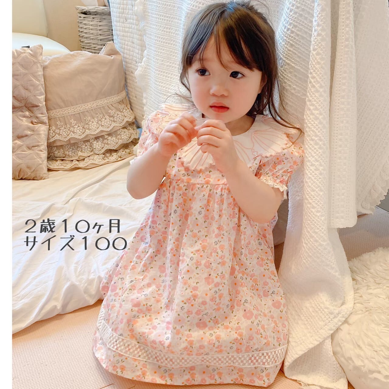 【即納販売♫数量限定】size80 シェル襟の花柄ワンピース