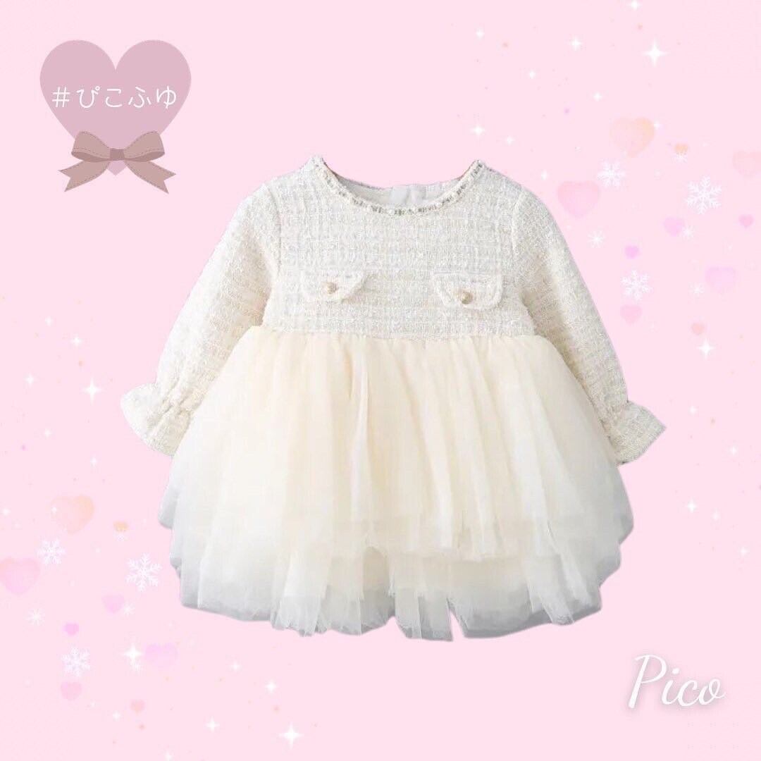 【Pico即納】size100 ホワイトのツイードワンピース