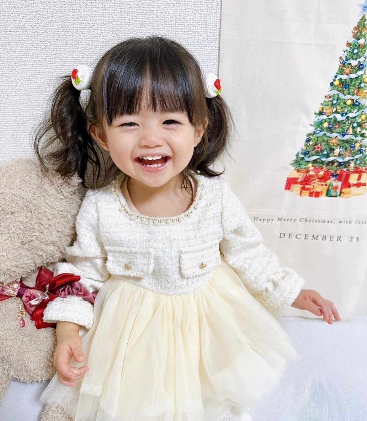 ボリュームのあるふんわりチュールスカートにツイードの異素材MIXがかわいいワンピースです♡
