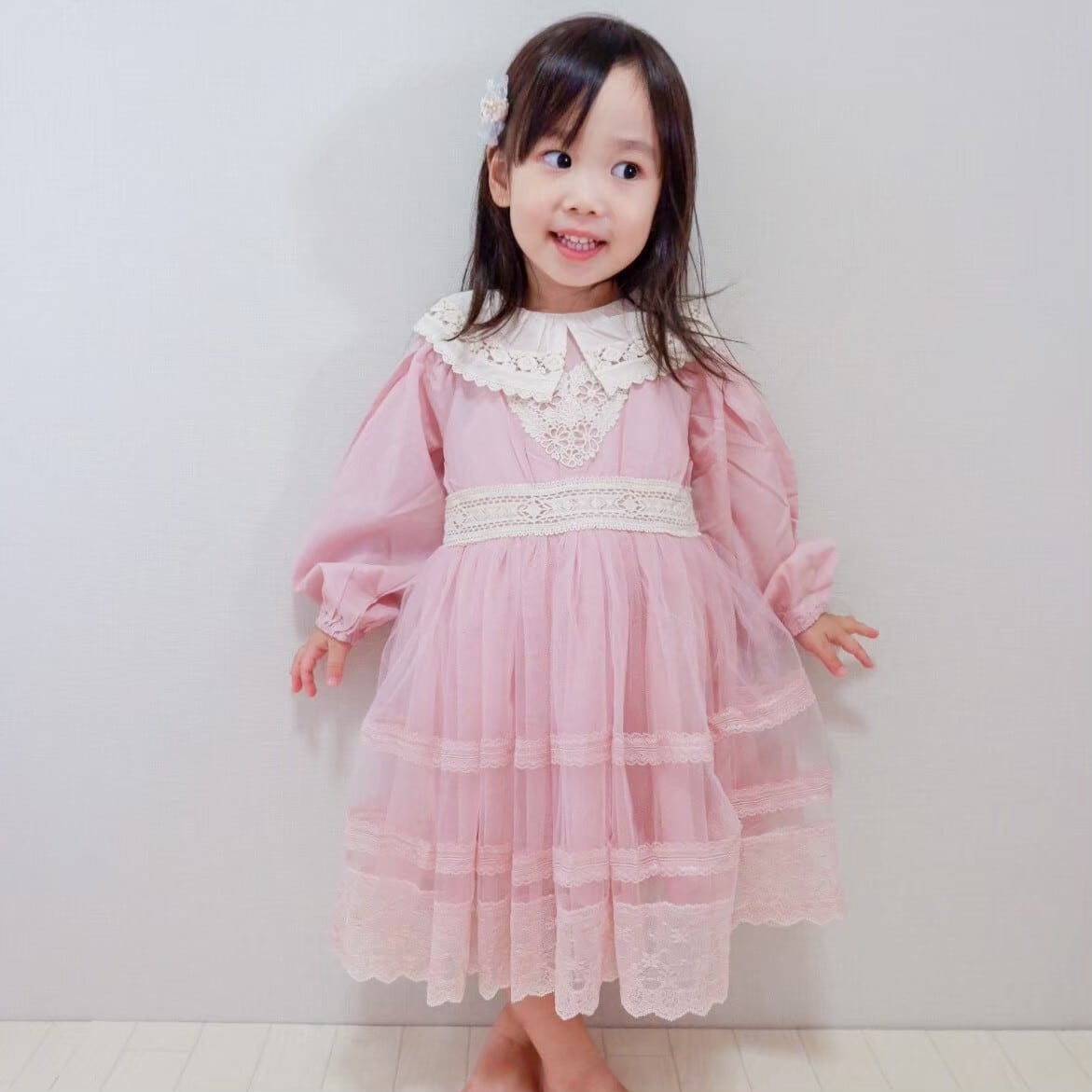 【Pico即納】size90 アンティーク風ピンクワンピース