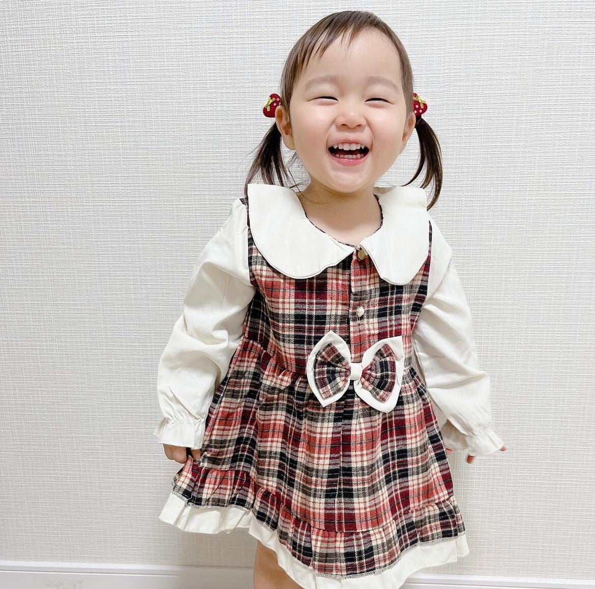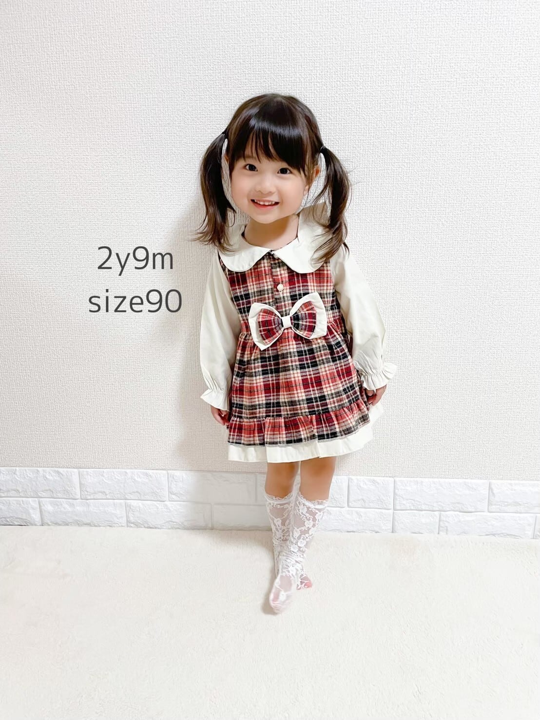 【サンプル品お値引き】size90 大きなりぼんのチェックワンピース(あか)