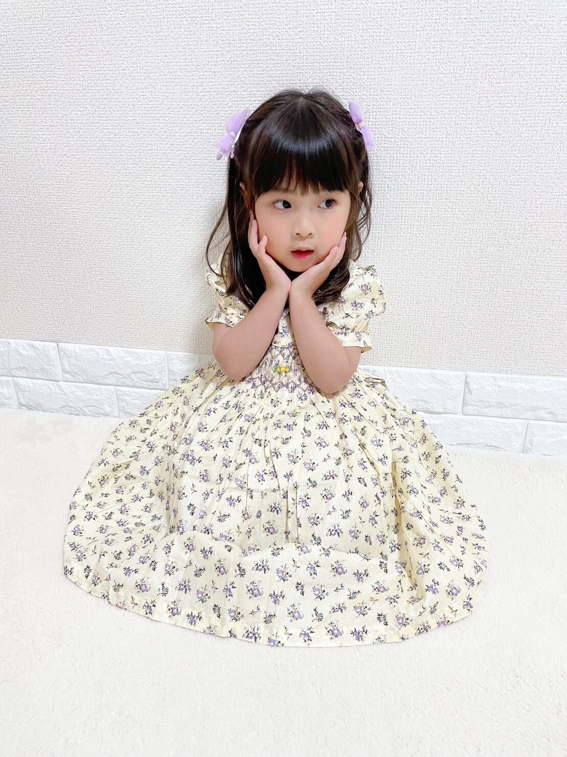 【お花畑♡】size150 クリームベージュのPicoスモッキングワンピース