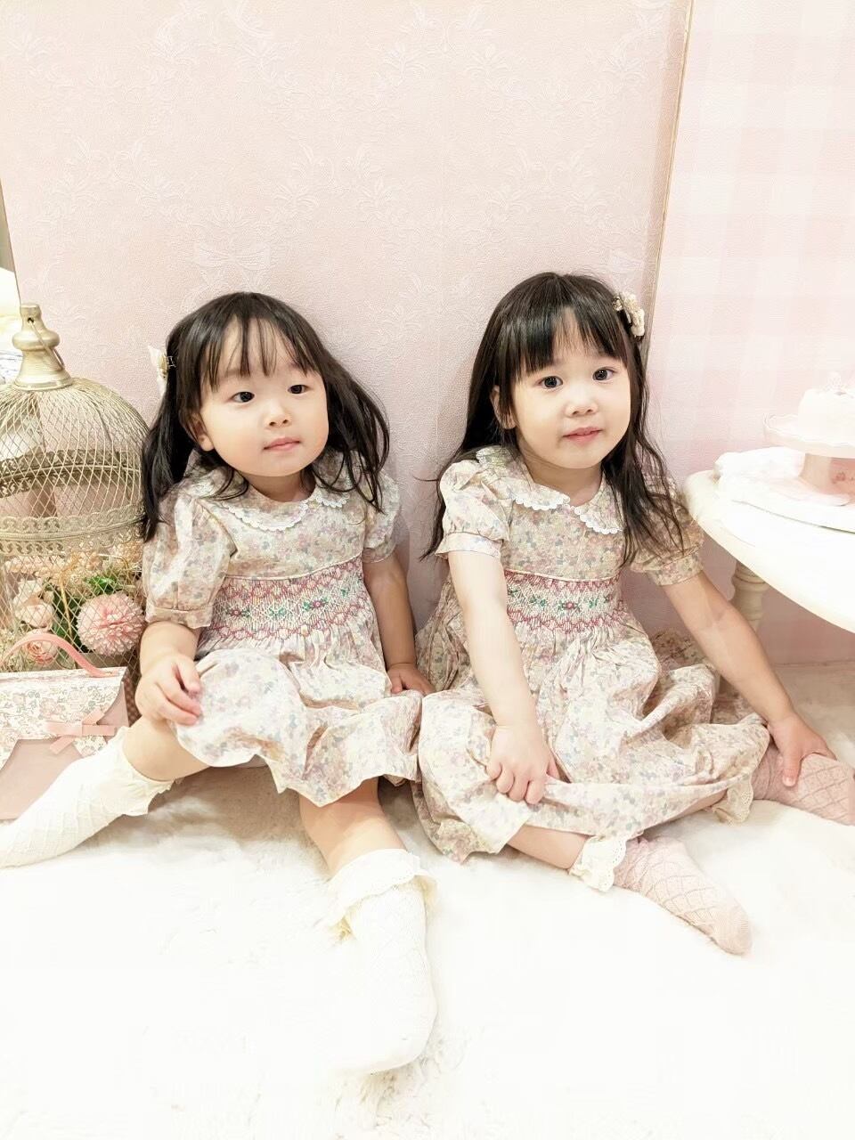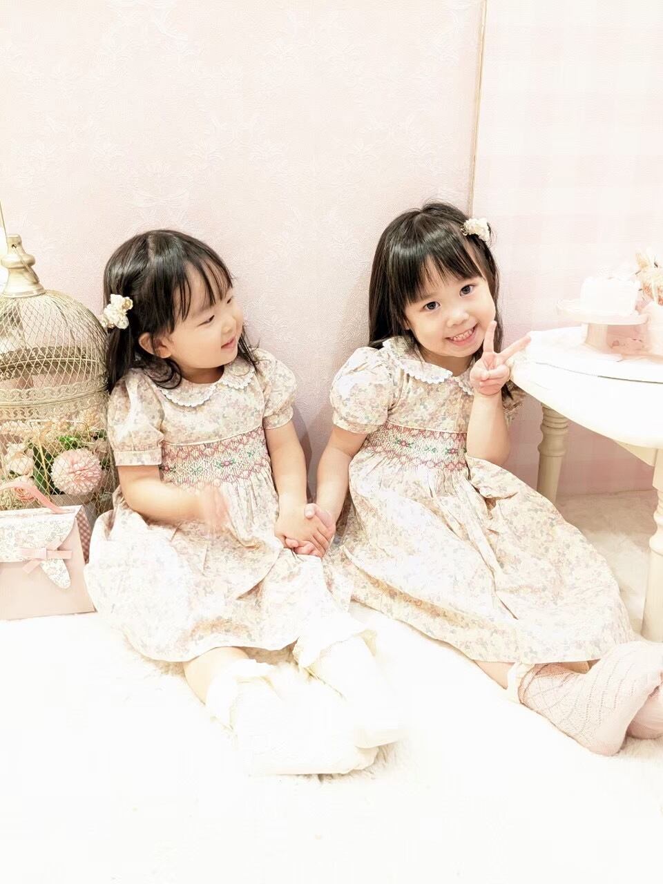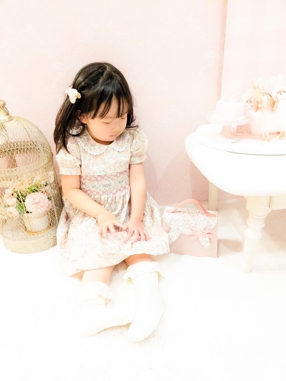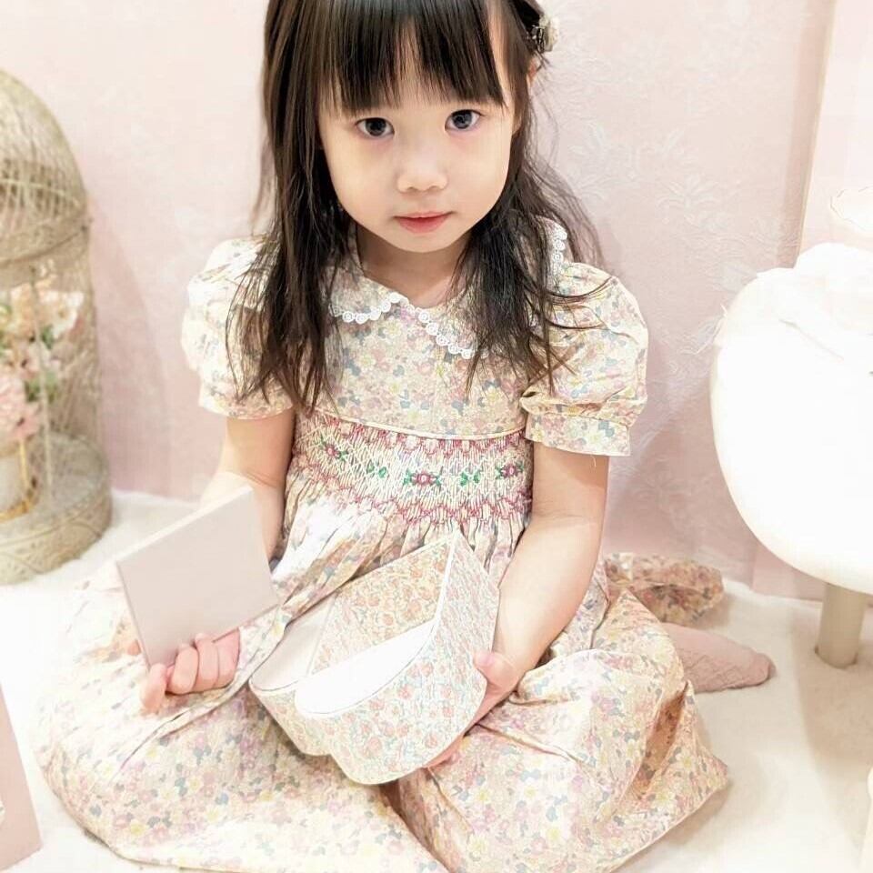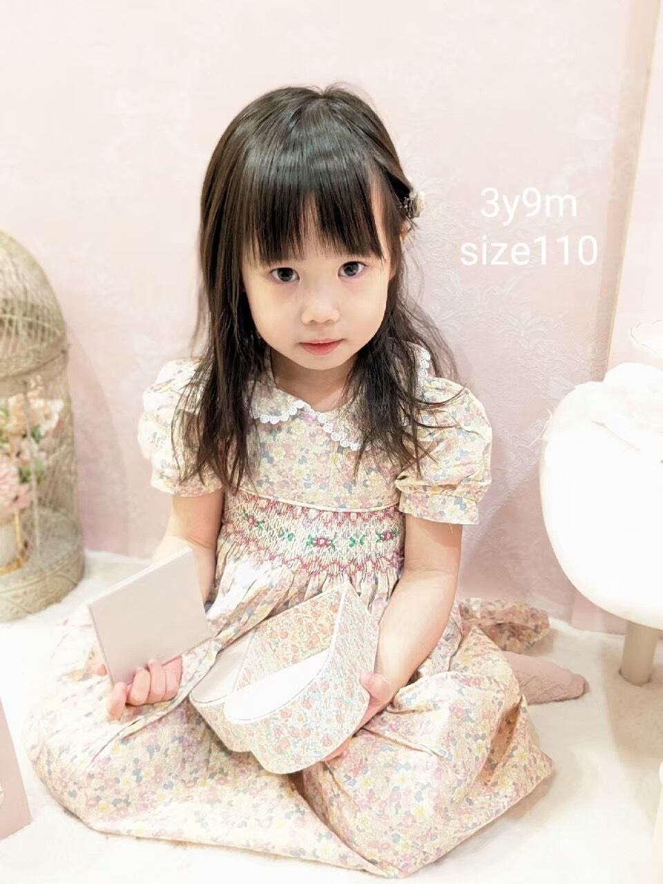 大人っぽいくすみフラワーのスモッキングワンピース(^^)