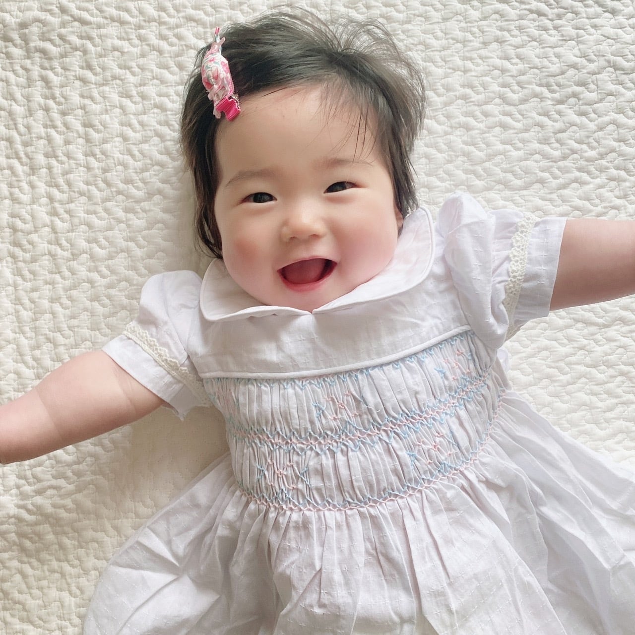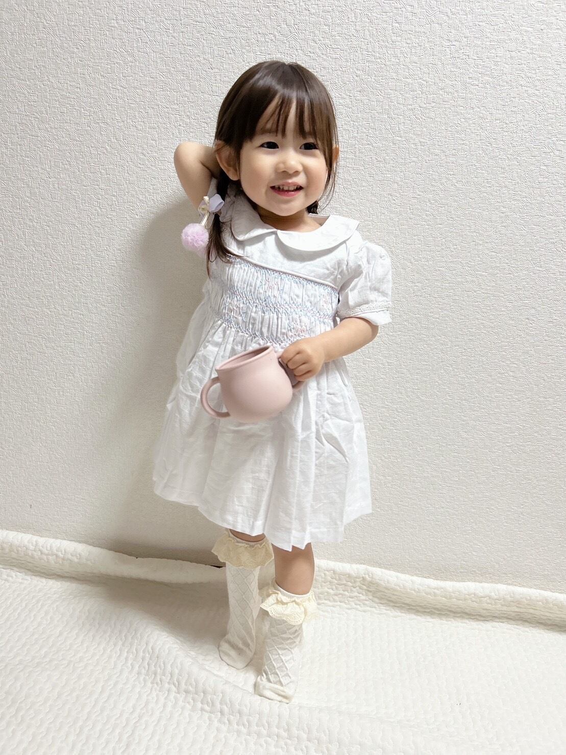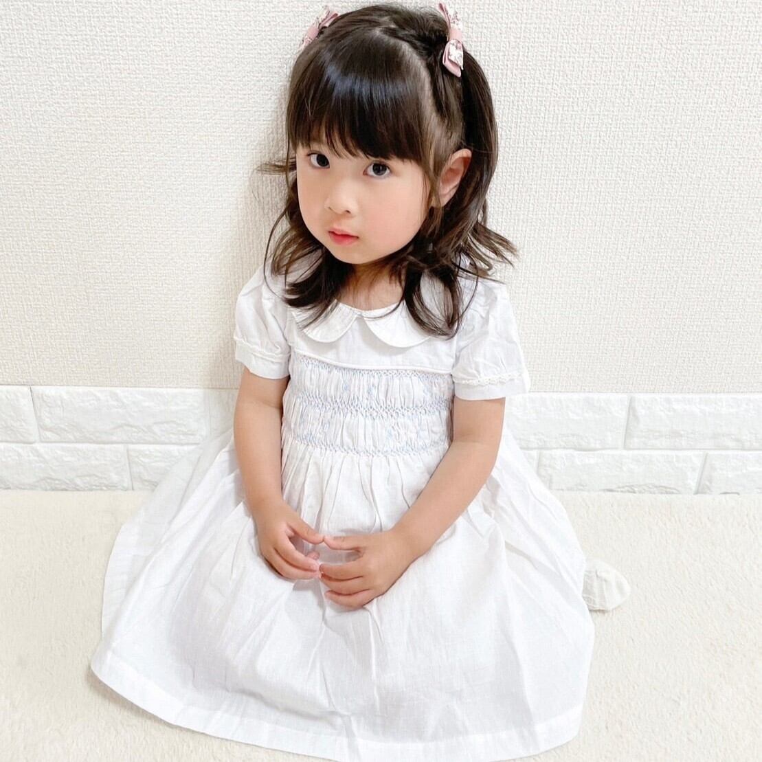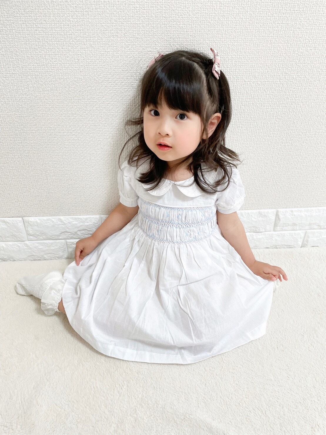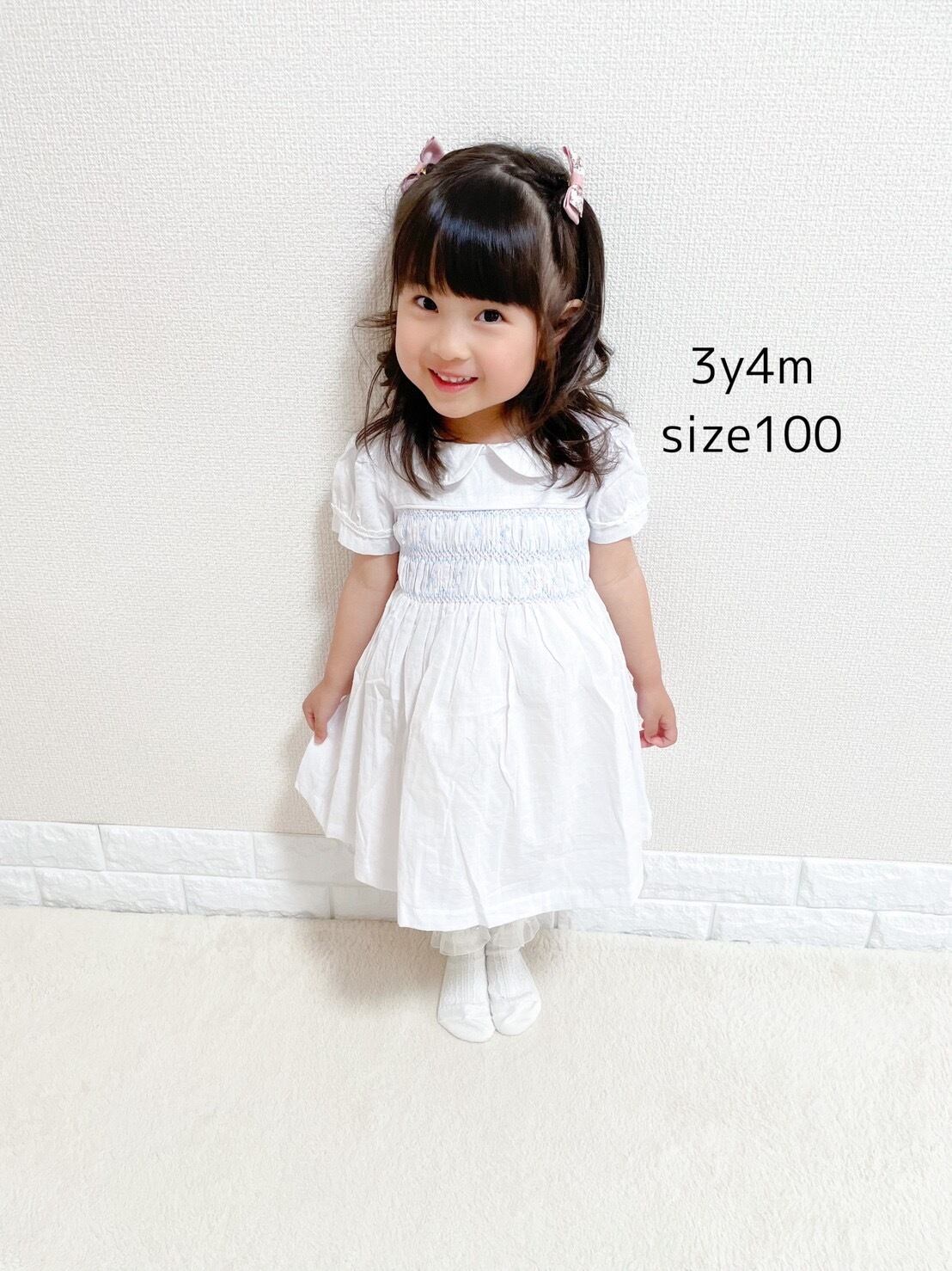 【お花畑♡】size80.90 ホワイトPicoスモッキングワンピース