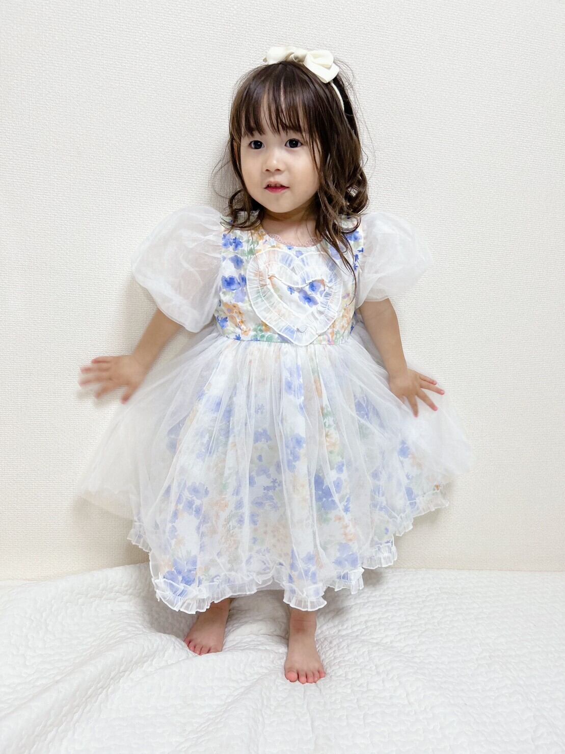【Pico即納】size90 ハートフリルワンピース(ブルー)