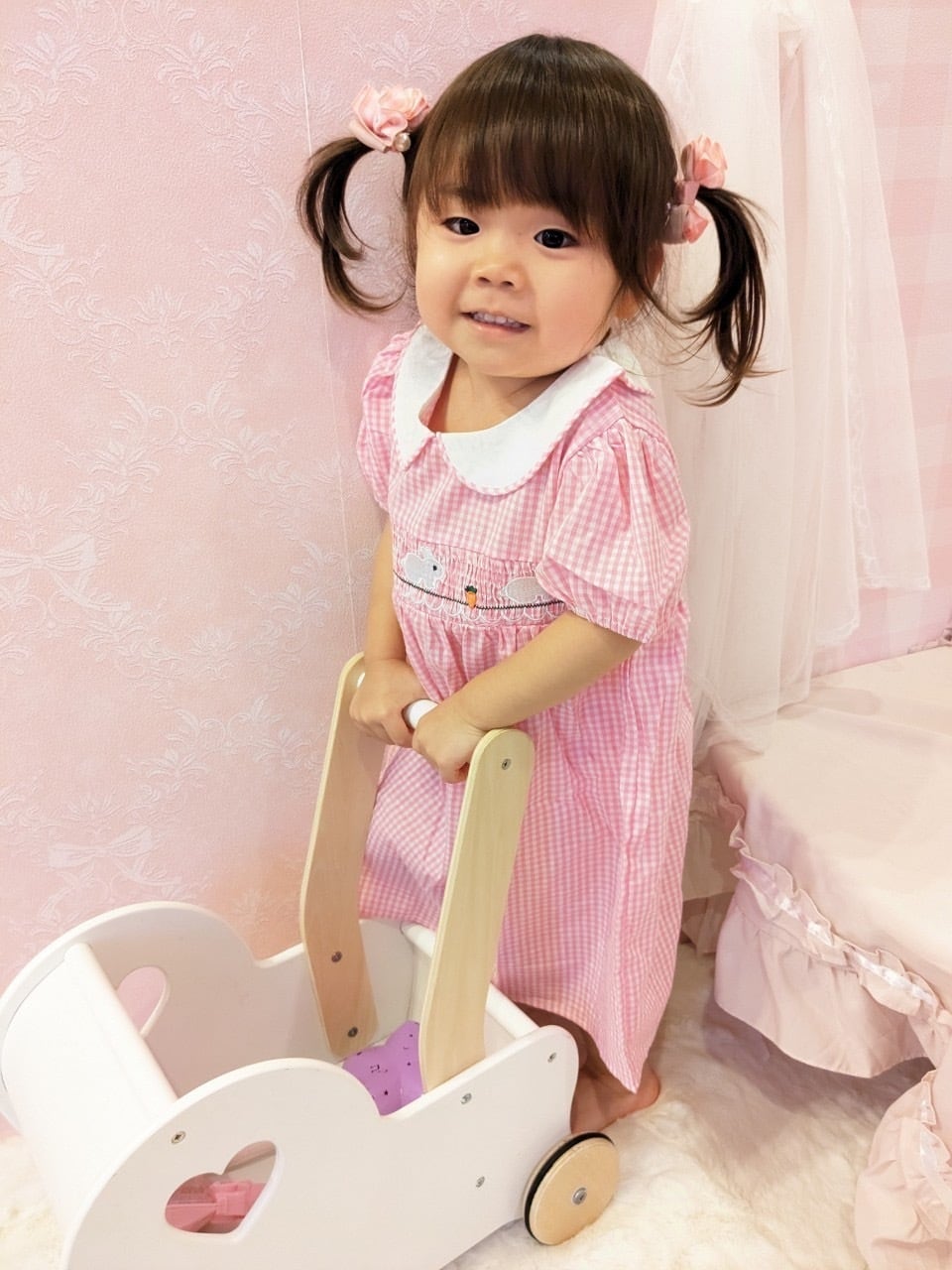 女の子らしいぴんくのスモッキングワンピース(^^)
