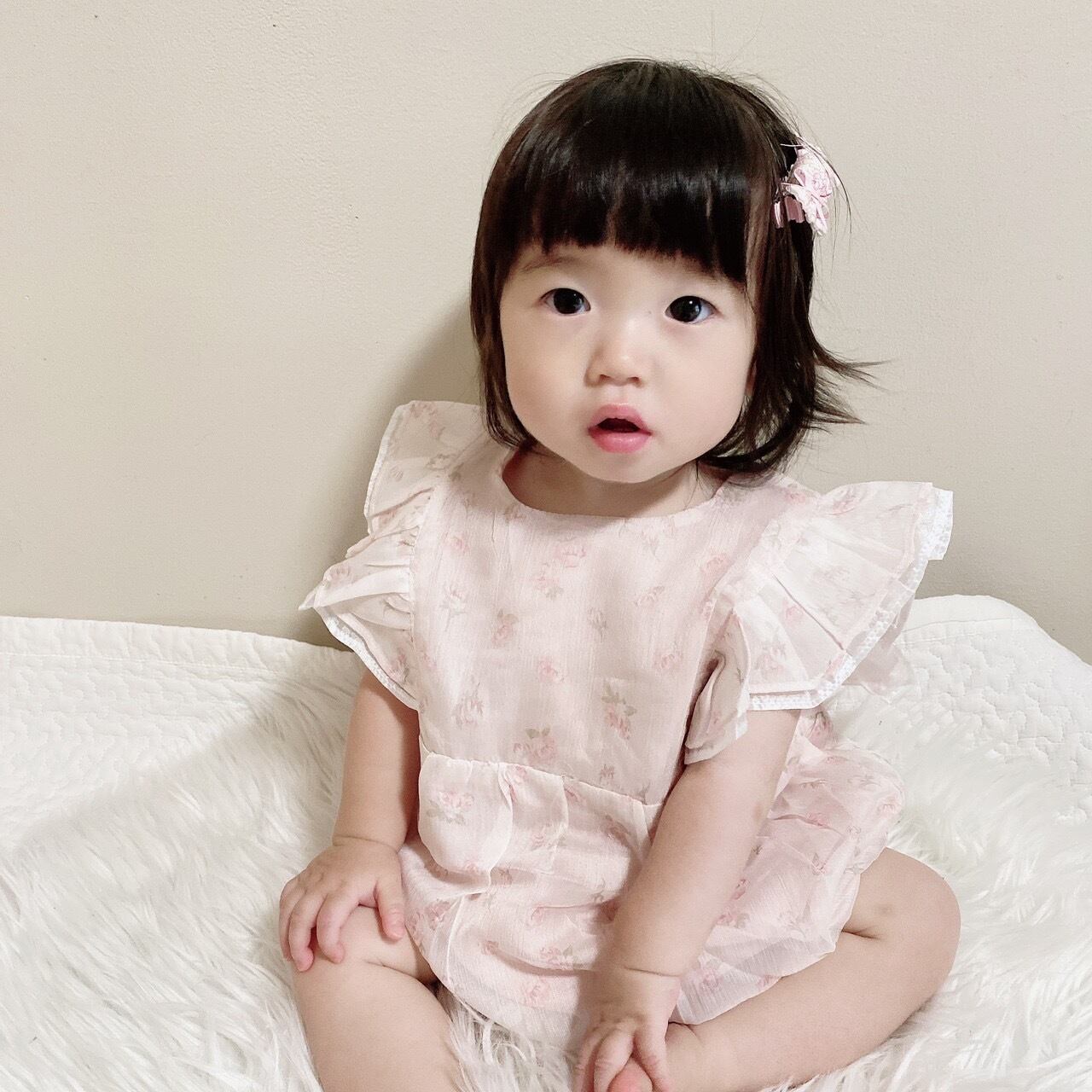ふんわりとしたパステルカラーの花柄ロンパース♡