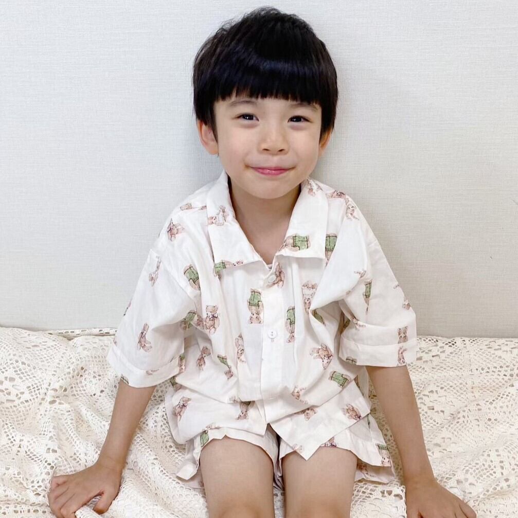 ナチュラルカラーのくまちゃんがおしゃれな男の子用のセットアップ♡