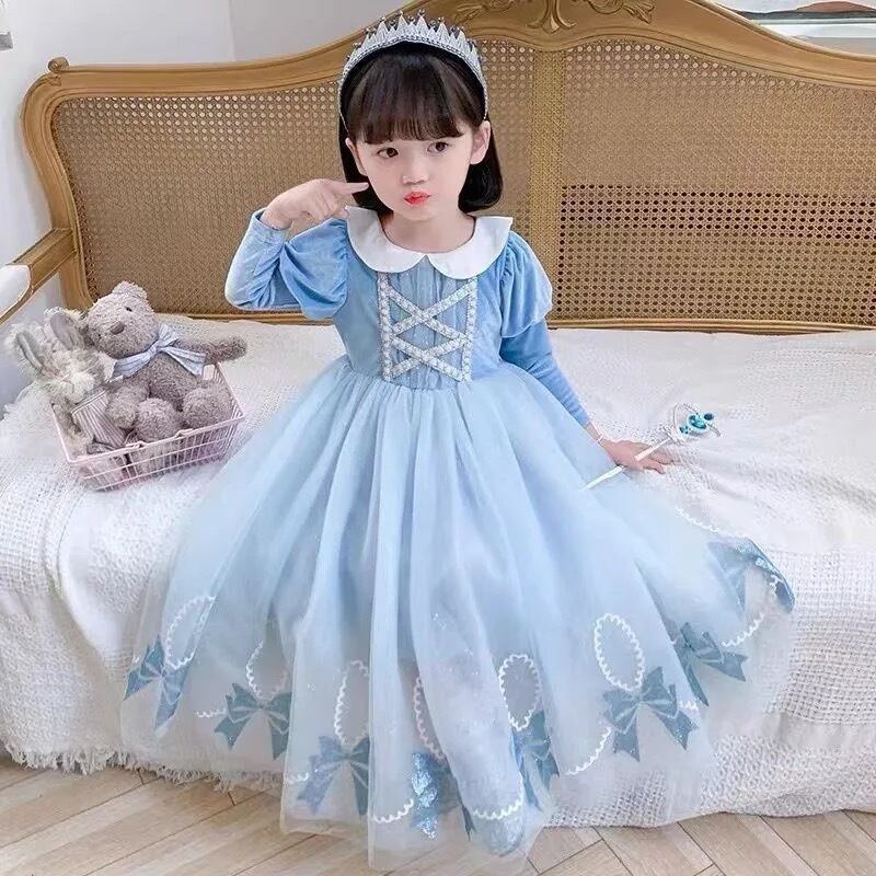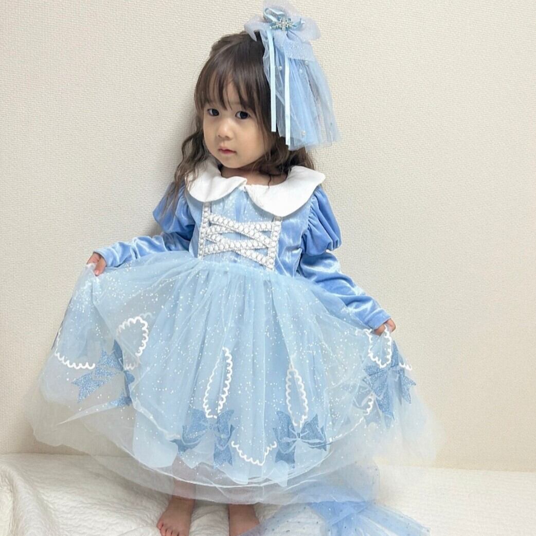 鮮やかなブルーが可愛い♡冬素材のドレス(^^)