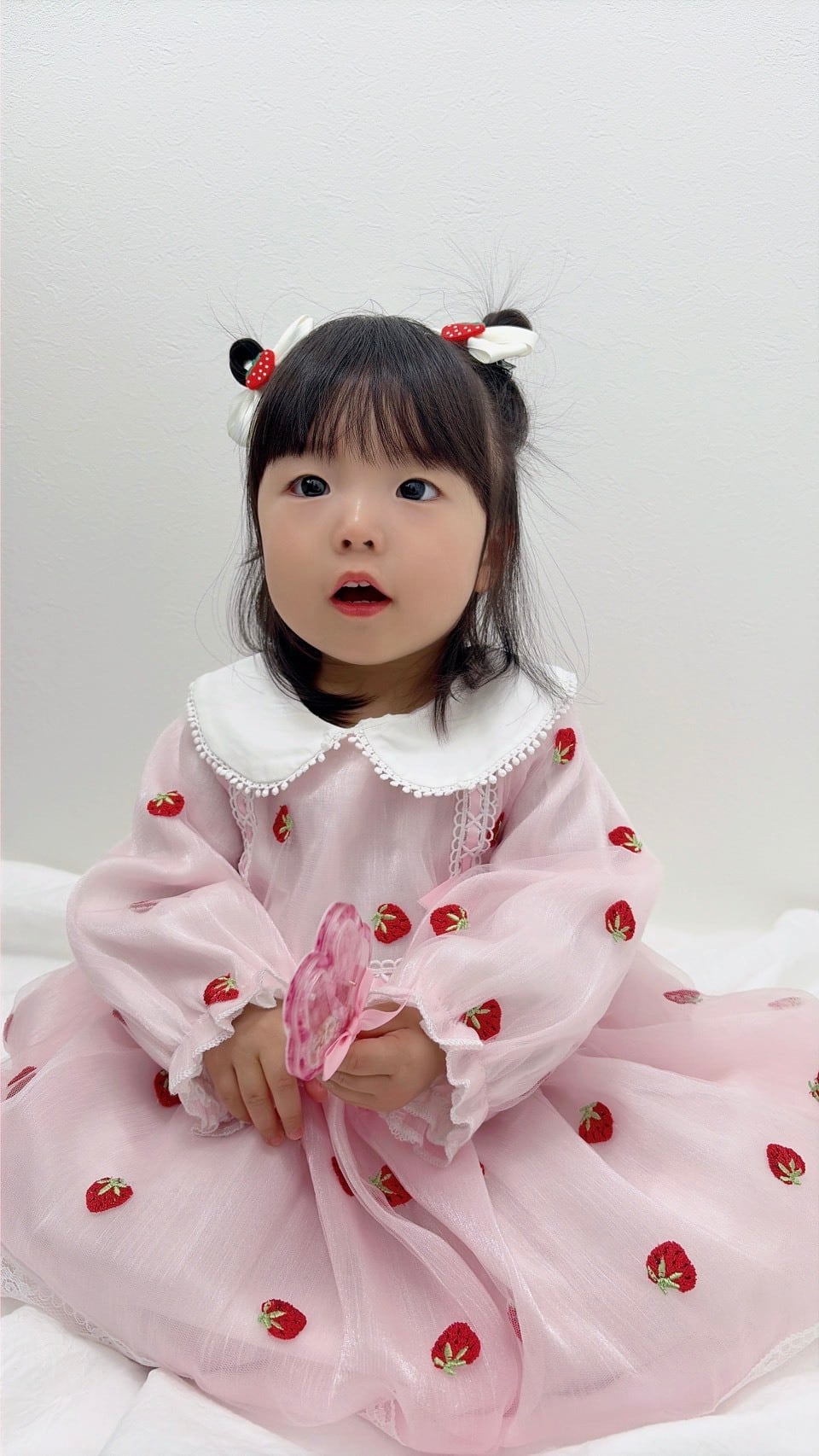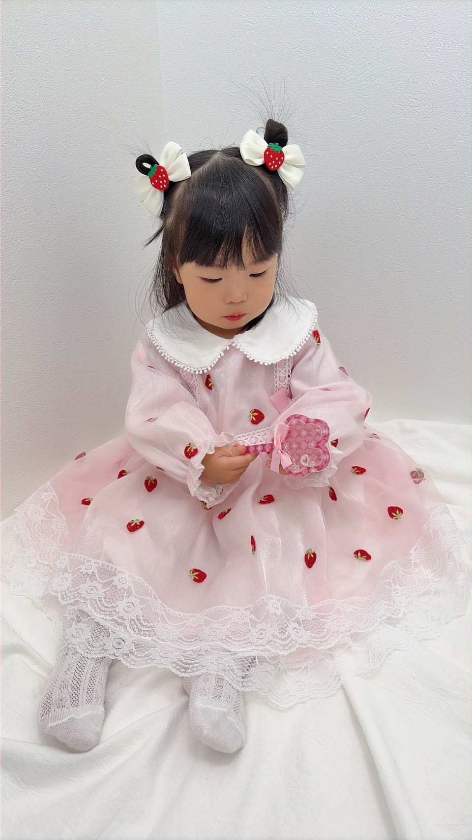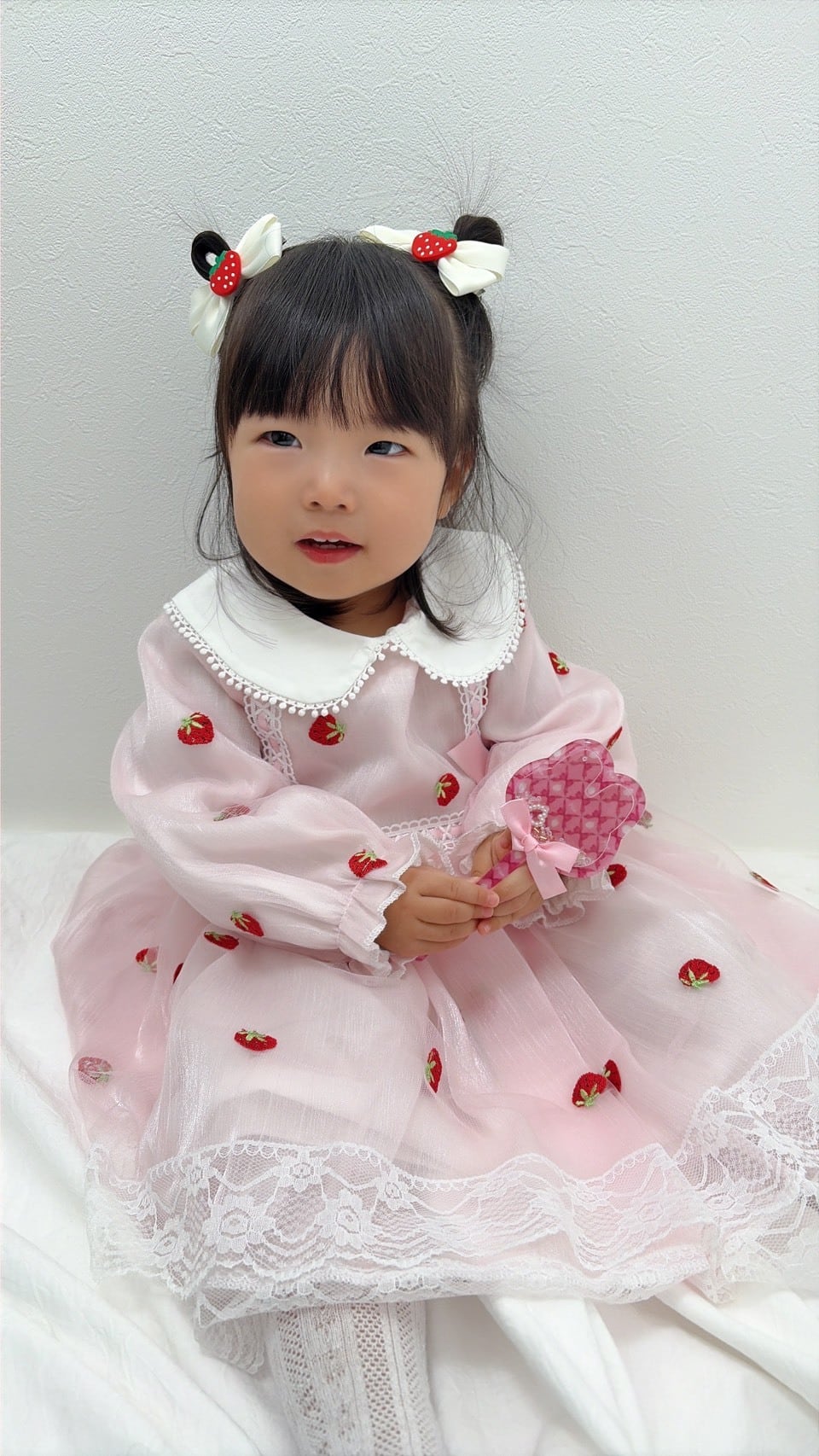 かわいいいちごがふんだんに刺繍された