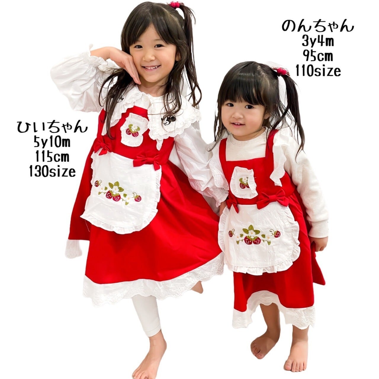【Pico Cafe】size80 いちご畑のエプロンワンピース