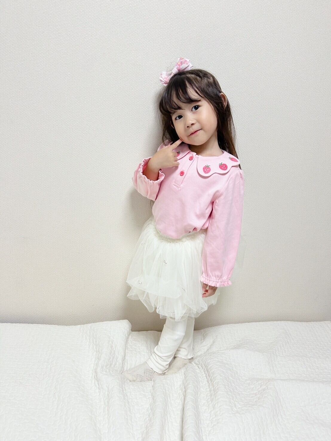 【専用ページ♡】size110 Pink いちご刺繍の長袖トップスとヘアゴム